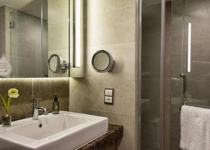 Some of the 157 air-conditioned rooms are equipped with blackout drapes and an ironing board, as well as entertainment amenities such as cable channels. For your comfort, you will find a bidet, a separate toilet, and a shower, along with a hairdryer and dressing gowns. They offer views of the city.